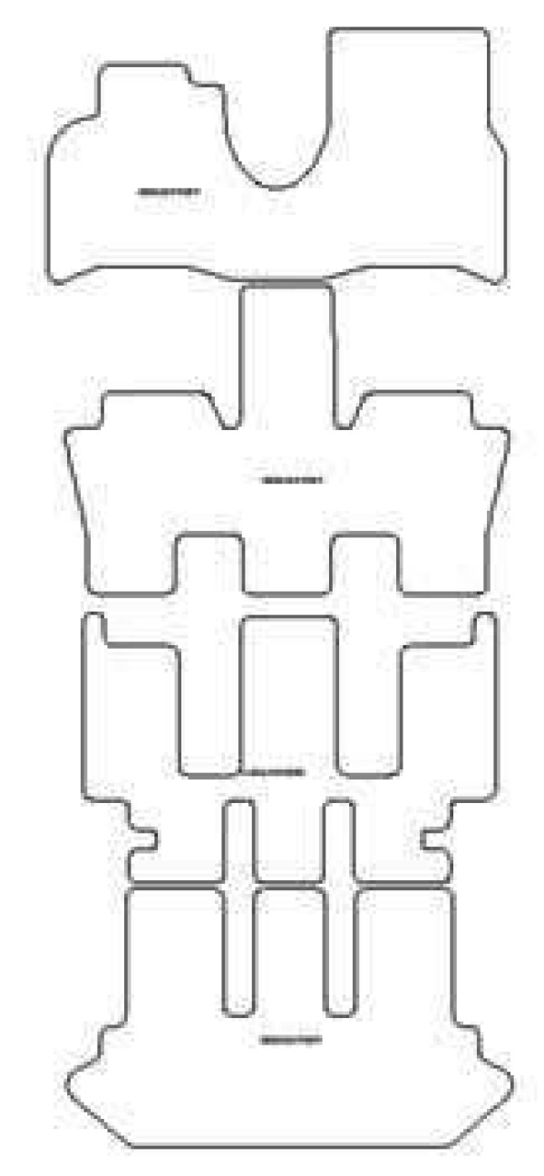 Composizione set 1 tappeto anteriore, 1 tappeto I fila 1 tappeto II fila e 1 tappeto bagagliaio