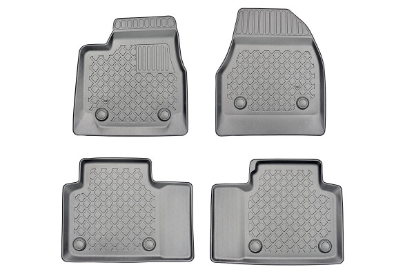 Protezione >  La miscela in termoplastica TPE di alta qualità e la forma a rialzo assicurano una protezione completa. I bordi del set sono alti per prevenire la fuoriuscita di liquidi e della sporcizia, mantenendoli all'interno dei tappetini. Il piano sottostante rimane così asciutto e pulito, eliminando il rischio di cattivi odori e muffe. Designed in Italy, Made in EU. I tappetini sono appositamente progettati per resistere ai raggi UV, alle temperature elevate e ai graffi.