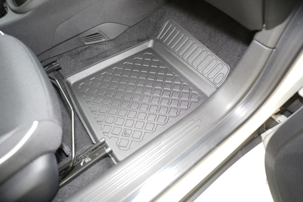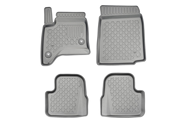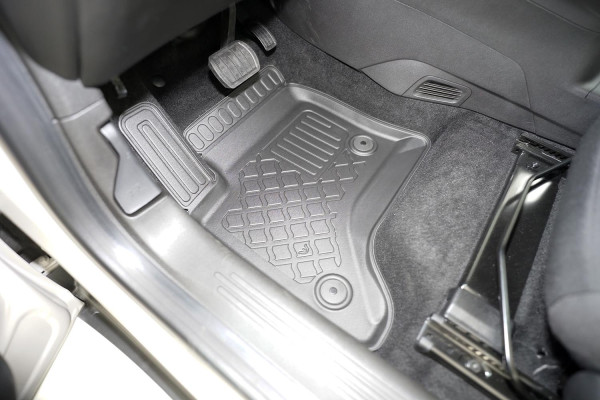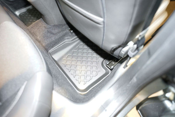 Protezione >  La miscela in termoplastica TPE di alta qualità e la forma a rialzo assicurano una protezione completa. I bordi del set sono alti per prevenire la fuoriuscita di liquidi e della sporcizia, mantenendoli all'interno dei tappetini. Il piano sottostante rimane così asciutto e pulito, eliminando il rischio di cattivi odori e muffe. Designed in Italy, Made in EU. I tappetini sono appositamente progettati per resistere ai raggi UV, alle temperature elevate e ai graffi.