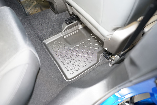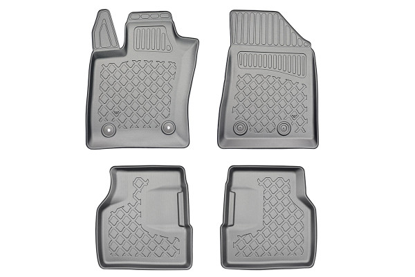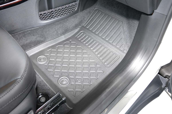 Protezione >  La miscela in termoplastica TPE di alta qualità e la forma a rialzo assicurano una protezione completa. I bordi del set sono alti per prevenire la fuoriuscita di liquidi e della sporcizia, mantenendoli all'interno dei tappetini. Il piano sottostante rimane così asciutto e pulito, eliminando il rischio di cattivi odori e muffe. Designed in Italy, Made in EU. I tappetini sono appositamente progettati per resistere ai raggi UV, alle temperature elevate e ai graffi.