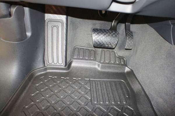 Protezione >  La miscela in termoplastica TPE di alta qualità e la forma a rialzo assicurano una protezione completa. I bordi del set sono alti per prevenire la fuoriuscita di liquidi e della sporcizia, mantenendoli all'interno dei tappetini. Il piano sottostante rimane così asciutto e pulito, eliminando il rischio di cattivi odori e muffe. Designed in Italy, Made in EU. I tappetini sono appositamente progettati per resistere ai raggi UV, alle temperature elevate e ai graffi.