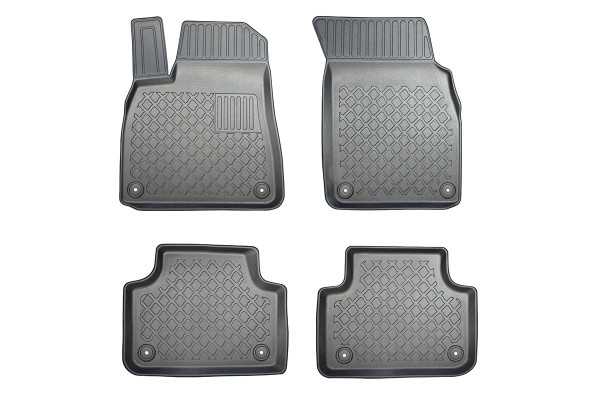Protezione >  La miscela in termoplastica TPE di alta qualità e la forma a rialzo assicurano una protezione completa. I bordi del set sono alti per prevenire la fuoriuscita di liquidi e della sporcizia, mantenendoli all'interno dei tappetini. Il piano sottostante rimane così asciutto e pulito, eliminando il rischio di cattivi odori e muffe. Designed in Italy, Made in EU. I tappetini sono appositamente progettati per resistere ai raggi UV, alle temperature elevate e ai graffi.