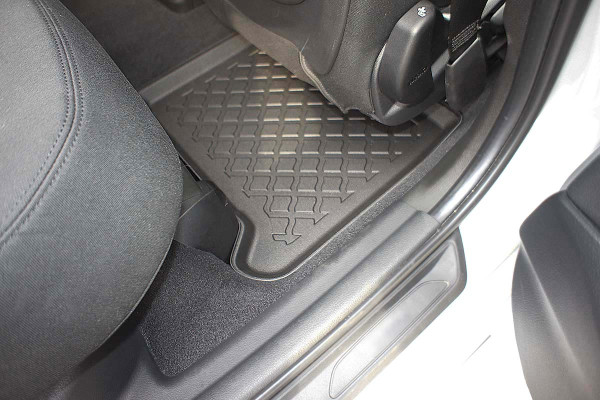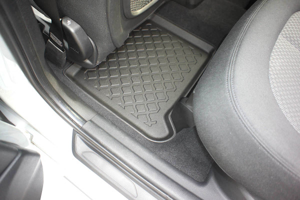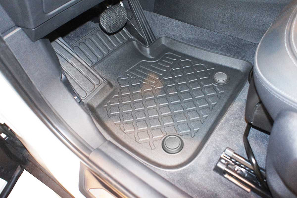 Protezione >  La miscela in termoplastica TPE di alta qualità e la forma a rialzo assicurano una protezione completa. I bordi del set sono alti per prevenire la fuoriuscita di liquidi e della sporcizia, mantenendoli all'interno dei tappetini. Il piano sottostante rimane così asciutto e pulito, eliminando il rischio di cattivi odori e muffe. Designed in Italy, Made in EU. I tappetini sono appositamente progettati per resistere ai raggi UV, alle temperature elevate e ai graffi.