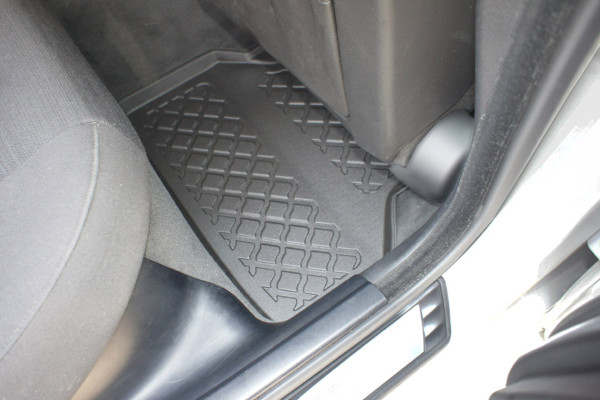 Protezione >  La miscela in termoplastica TPE di alta qualità e la forma a rialzo assicurano una protezione completa. I bordi del set sono alti per prevenire la fuoriuscita di liquidi e della sporcizia, mantenendoli all'interno dei tappetini. Il piano sottostante rimane così asciutto e pulito, eliminando il rischio di cattivi odori e muffe. Designed in Italy, Made in EU. I tappetini sono appositamente progettati per resistere ai raggi UV, alle temperature elevate e ai graffi.