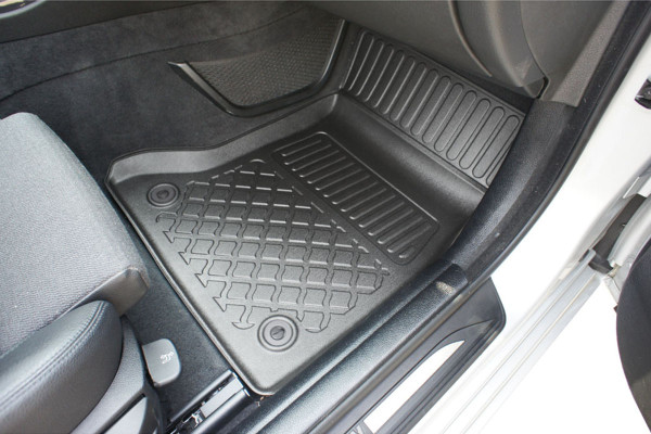 Protezione >  La miscela in termoplastica TPE di alta qualità e la forma a rialzo assicurano una protezione completa. I bordi del set sono alti per prevenire la fuoriuscita di liquidi e della sporcizia, mantenendoli all'interno dei tappetini. Il piano sottostante rimane così asciutto e pulito, eliminando il rischio di cattivi odori e muffe. Designed in Italy, Made in EU. I tappetini sono appositamente progettati per resistere ai raggi UV, alle temperature elevate e ai graffi.