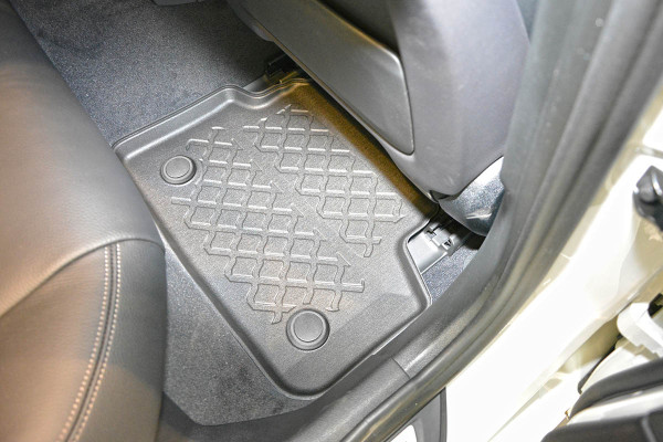 Protezione >  La miscela in termoplastica TPE di alta qualità e la forma a rialzo assicurano una protezione completa. I bordi del set sono alti per prevenire la fuoriuscita di liquidi e della sporcizia, mantenendoli all'interno dei tappetini. Il piano sottostante rimane così asciutto e pulito, eliminando il rischio di cattivi odori e muffe. Designed in Italy, Made in EU. I tappetini sono appositamente progettati per resistere ai raggi UV, alle temperature elevate e ai graffi.