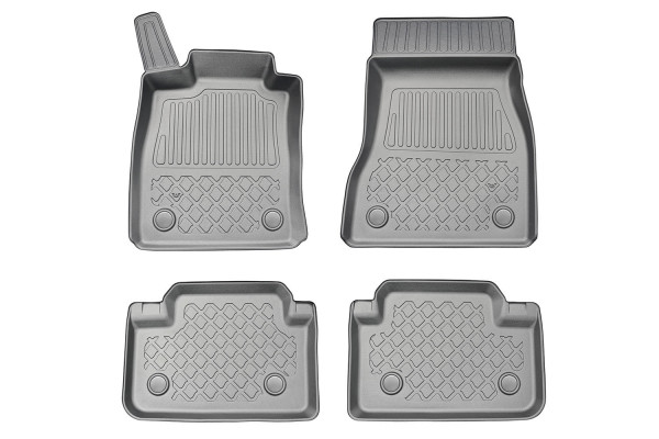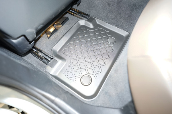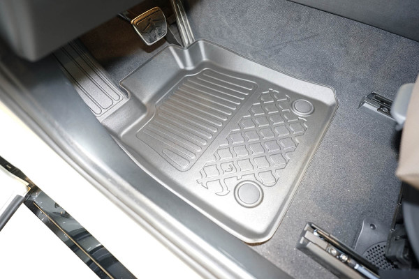 Protezione >  La miscela in termoplastica TPE di alta qualità e la forma a rialzo assicurano una protezione completa. I bordi del set sono alti per prevenire la fuoriuscita di liquidi e della sporcizia, mantenendoli all'interno dei tappetini. Il piano sottostante rimane così asciutto e pulito, eliminando il rischio di cattivi odori e muffe. Designed in Italy, Made in EU. I tappetini sono appositamente progettati per resistere ai raggi UV, alle temperature elevate e ai graffi.