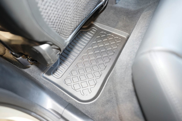 Protezione >  La miscela in termoplastica TPE di alta qualità e la forma a rialzo assicurano una protezione completa. I bordi del set sono alti per prevenire la fuoriuscita di liquidi e della sporcizia, mantenendoli all'interno dei tappetini. Il piano sottostante rimane così asciutto e pulito, eliminando il rischio di cattivi odori e muffe. Designed in Italy, Made in EU. I tappetini sono appositamente progettati per resistere ai raggi UV, alle temperature elevate e ai graffi.