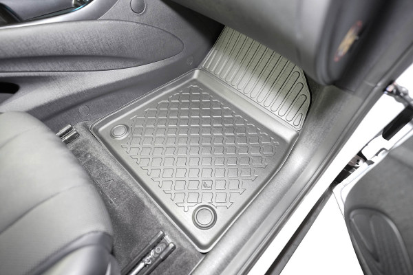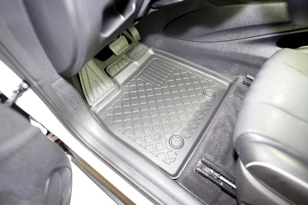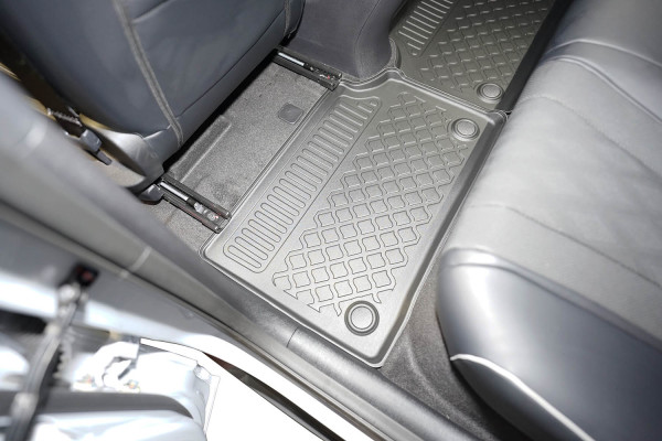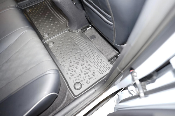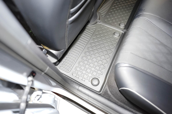 Protezione >  La miscela in termoplastica TPE di alta qualità e la forma a rialzo assicurano una protezione completa. I bordi del set sono alti per prevenire la fuoriuscita di liquidi e della sporcizia, mantenendoli all'interno dei tappetini. Il piano sottostante rimane così asciutto e pulito, eliminando il rischio di cattivi odori e muffe. Designed in Italy, Made in EU. I tappetini sono appositamente progettati per resistere ai raggi UV, alle temperature elevate e ai graffi.