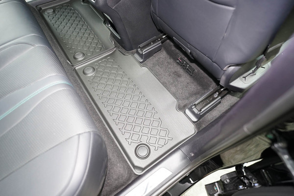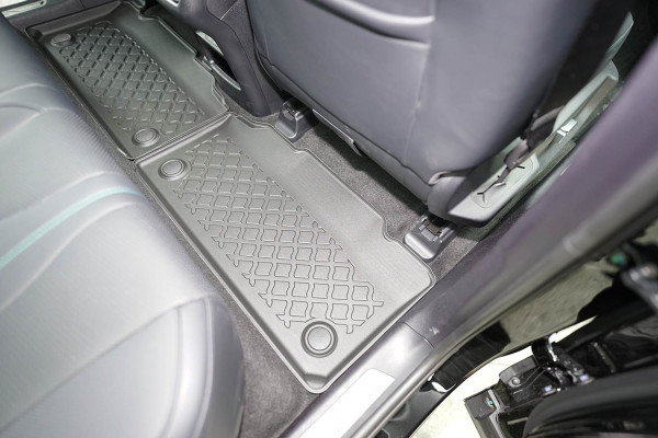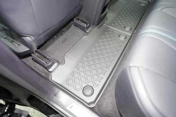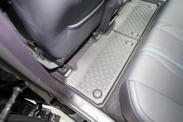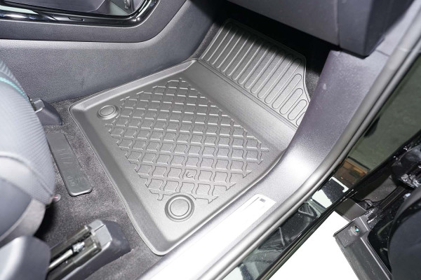 Protezione >  La miscela in termoplastica TPE di alta qualità e la forma a rialzo assicurano una protezione completa. I bordi del set sono alti per prevenire la fuoriuscita di liquidi e della sporcizia, mantenendoli all'interno dei tappetini. Il piano sottostante rimane così asciutto e pulito, eliminando il rischio di cattivi odori e muffe. Designed in Italy, Made in EU. I tappetini sono appositamente progettati per resistere ai raggi UV, alle temperature elevate e ai graffi.
