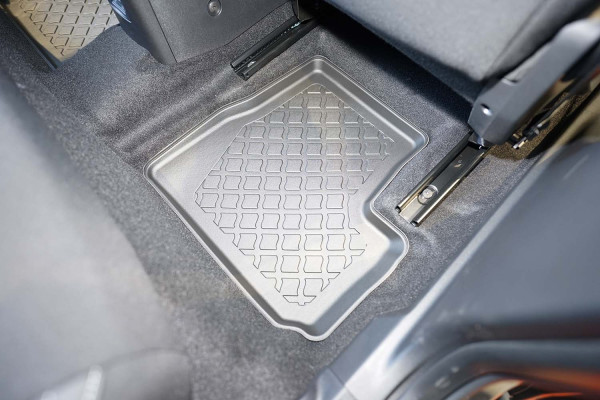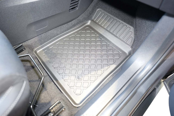 Protezione >  La miscela in termoplastica TPE di alta qualità e la forma a rialzo assicurano una protezione completa. I bordi del set sono alti per prevenire la fuoriuscita di liquidi e della sporcizia, mantenendoli all'interno dei tappetini. Il piano sottostante rimane così asciutto e pulito, eliminando il rischio di cattivi odori e muffe. Designed in Italy, Made in EU. I tappetini sono appositamente progettati per resistere ai raggi UV, alle temperature elevate e ai graffi.