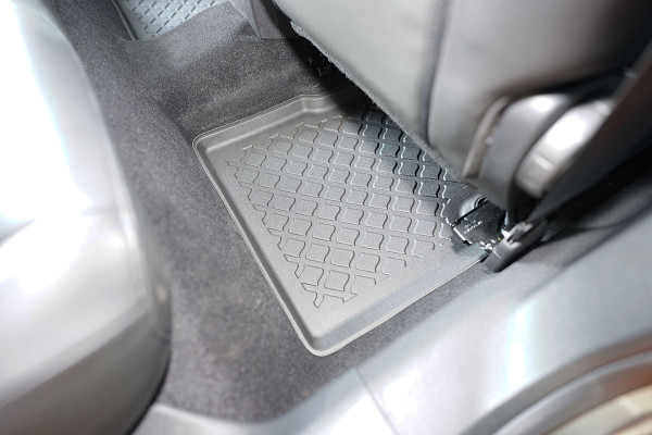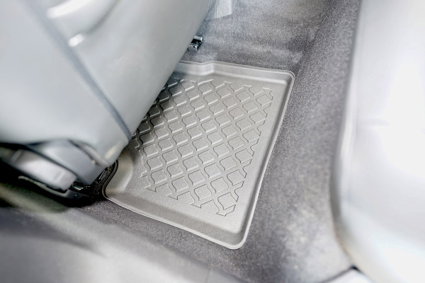 Protezione >  La miscela in termoplastica TPE di alta qualità e la forma a rialzo assicurano una protezione completa. I bordi del set sono alti per prevenire la fuoriuscita di liquidi e della sporcizia, mantenendoli all'interno dei tappetini. Il piano sottostante rimane così asciutto e pulito, eliminando il rischio di cattivi odori e muffe. Designed in Italy, Made in EU. I tappetini sono appositamente progettati per resistere ai raggi UV, alle temperature elevate e ai graffi.