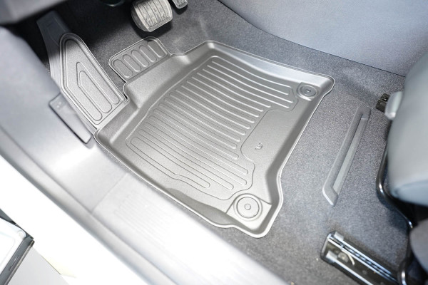 Protezione >  La miscela in termoplastica TPE di alta qualità e la forma a rialzo assicurano una protezione completa. I bordi del set sono alti per prevenire la fuoriuscita di liquidi e della sporcizia, mantenendoli all'interno dei tappetini. Il piano sottostante rimane così asciutto e pulito, eliminando il rischio di cattivi odori e muffe. Designed in Italy, Made in EU. I tappetini sono appositamente progettati per resistere ai raggi UV, alle temperature elevate e ai graffi.