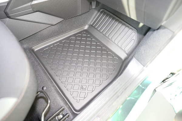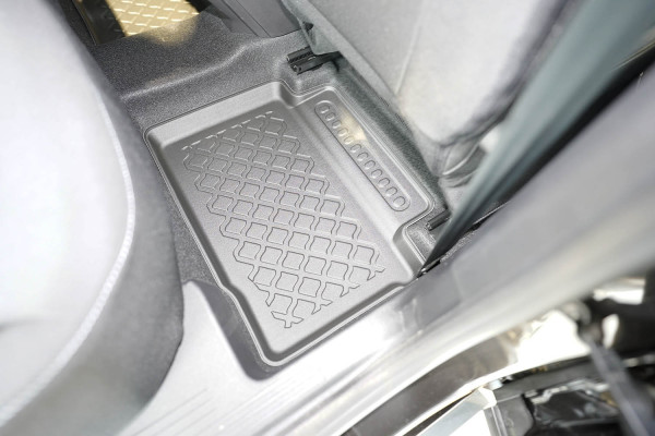 Protezione >  La miscela in termoplastica TPE di alta qualità e la forma a rialzo assicurano una protezione completa. I bordi del set sono alti per prevenire la fuoriuscita di liquidi e della sporcizia, mantenendoli all'interno dei tappetini. Il piano sottostante rimane così asciutto e pulito, eliminando il rischio di cattivi odori e muffe. Designed in Italy, Made in EU. I tappetini sono appositamente progettati per resistere ai raggi UV, alle temperature elevate e ai graffi.