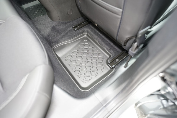 Protezione >  La miscela in termoplastica TPE di alta qualità e la forma a rialzo assicurano una protezione completa. I bordi del set sono alti per prevenire la fuoriuscita di liquidi e della sporcizia, mantenendoli all'interno dei tappetini. Il piano sottostante rimane così asciutto e pulito, eliminando il rischio di cattivi odori e muffe. Designed in Italy, Made in EU. I tappetini sono appositamente progettati per resistere ai raggi UV, alle temperature elevate e ai graffi.