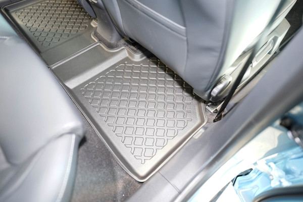 Protezione >  La miscela in termoplastica TPE di alta qualità e la forma a rialzo assicurano una protezione completa. I bordi del set sono alti per prevenire la fuoriuscita di liquidi e della sporcizia, mantenendoli all'interno dei tappetini. Il piano sottostante rimane così asciutto e pulito, eliminando il rischio di cattivi odori e muffe. Designed in Italy, Made in EU. I tappetini sono appositamente progettati per resistere ai raggi UV, alle temperature elevate e ai graffi.