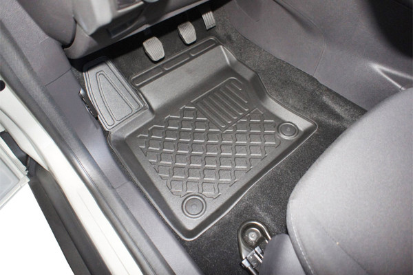 Protezione >  La miscela in termoplastica TPE di alta qualità e la forma a rialzo assicurano una protezione completa. I bordi del set sono alti per prevenire la fuoriuscita di liquidi e della sporcizia, mantenendoli all'interno dei tappetini. Il piano sottostante rimane così asciutto e pulito, eliminando il rischio di cattivi odori e muffe. Designed in Italy, Made in EU. I tappetini sono appositamente progettati per resistere ai raggi UV, alle temperature elevate e ai graffi.