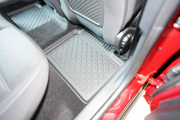 Confort> Il materiale è resistente, non emana cattivi odori e si può riciclare. Il fondo antiscivolo mantiene il set saldamente in posizione, offrendoti un comfort ottimale durante la guida della tua Ford Focus IV Hatchback (anche Mild Hybrid) 2018-. Se previsto dal costrutture, vengono forniti anche dei sistemi di fisaggio da installare.