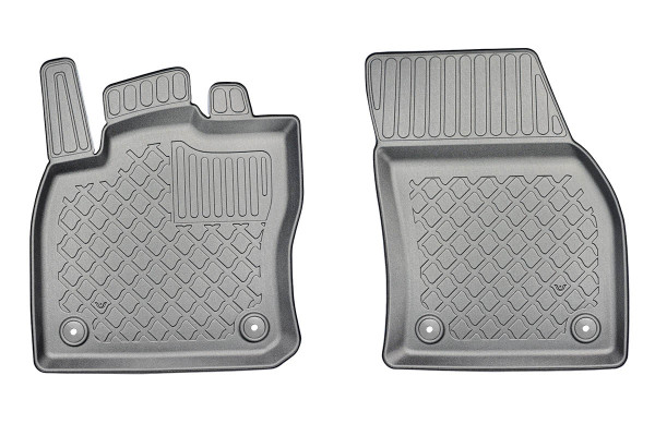 Protezione >  La miscela in termoplastica TPE di alta qualità e la forma a rialzo assicurano una protezione completa. I bordi del set sono alti per prevenire la fuoriuscita di liquidi e della sporcizia, mantenendoli all'interno dei tappetini. Il piano sottostante rimane così asciutto e pulito, eliminando il rischio di cattivi odori e muffe. Designed in Italy, Made in EU. I tappetini sono appositamente progettati per resistere ai raggi UV, alle temperature elevate e ai graffi.