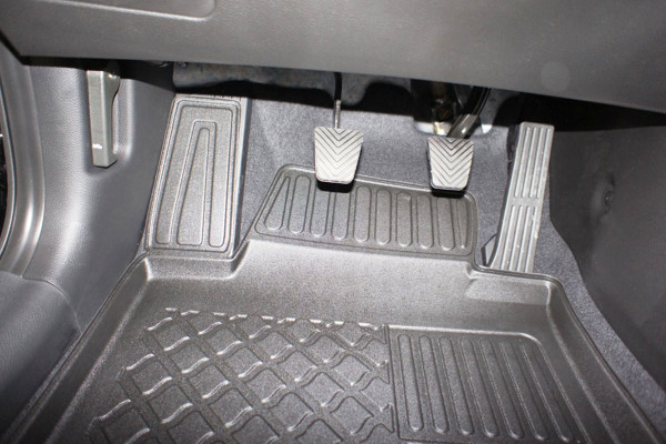 Protezione >  La miscela in termoplastica TPE di alta qualità e la forma a rialzo assicurano una protezione completa. I bordi del set sono alti per prevenire la fuoriuscita di liquidi e della sporcizia, mantenendoli all'interno dei tappetini. Il piano sottostante rimane così asciutto e pulito, eliminando il rischio di cattivi odori e muffe. Designed in Italy, Made in EU. I tappetini sono appositamente progettati per resistere ai raggi UV, alle temperature elevate e ai graffi.