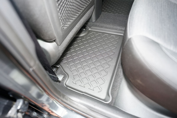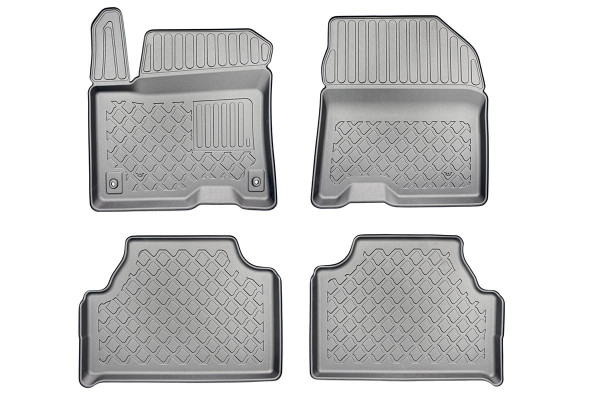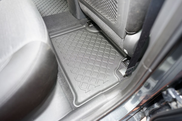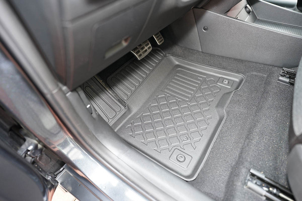 Protezione >  La miscela in termoplastica TPE di alta qualità e la forma a rialzo assicurano una protezione completa. I bordi del set sono alti per prevenire la fuoriuscita di liquidi e della sporcizia, mantenendoli all'interno dei tappetini. Il piano sottostante rimane così asciutto e pulito, eliminando il rischio di cattivi odori e muffe. Designed in Italy, Made in EU. I tappetini sono appositamente progettati per resistere ai raggi UV, alle temperature elevate e ai graffi.