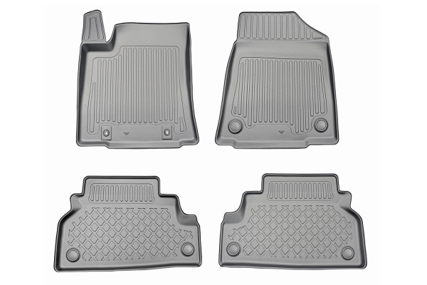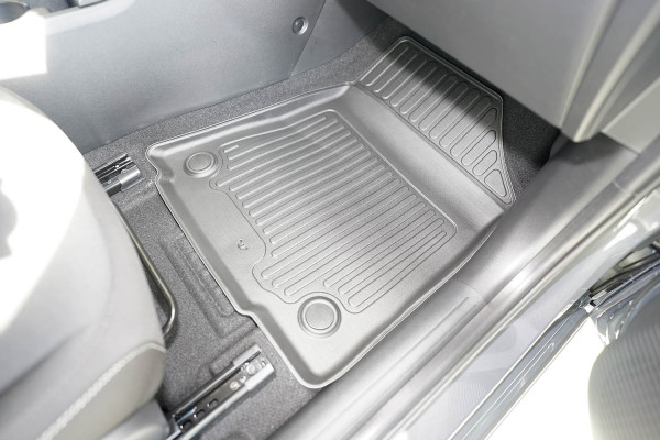 Protezione >  La miscela in termoplastica TPE di alta qualità e la forma a rialzo assicurano una protezione completa. I bordi del set sono alti per prevenire la fuoriuscita di liquidi e della sporcizia, mantenendoli all'interno dei tappetini. Il piano sottostante rimane così asciutto e pulito, eliminando il rischio di cattivi odori e muffe. Designed in Italy, Made in EU. I tappetini sono appositamente progettati per resistere ai raggi UV, alle temperature elevate e ai graffi.