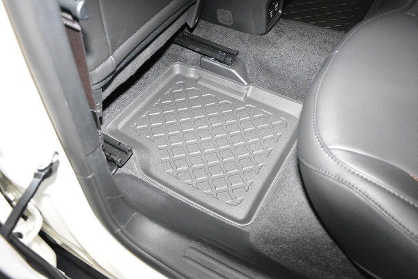 Protezione >  La miscela in termoplastica TPE di alta qualità e la forma a rialzo assicurano una protezione completa. I bordi del set sono alti per prevenire la fuoriuscita di liquidi e della sporcizia, mantenendoli all'interno dei tappetini. Il piano sottostante rimane così asciutto e pulito, eliminando il rischio di cattivi odori e muffe. Designed in Italy, Made in EU. I tappetini sono appositamente progettati per resistere ai raggi UV, alle temperature elevate e ai graffi.
