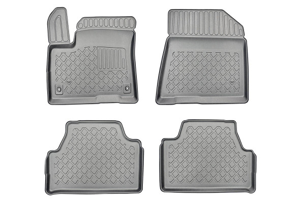 Protezione >  La miscela in termoplastica TPE di alta qualità e la forma a rialzo assicurano una protezione completa. I bordi del set sono alti per prevenire la fuoriuscita di liquidi e della sporcizia, mantenendoli all'interno dei tappetini. Il piano sottostante rimane così asciutto e pulito, eliminando il rischio di cattivi odori e muffe. Designed in Italy, Made in EU. I tappetini sono appositamente progettati per resistere ai raggi UV, alle temperature elevate e ai graffi.