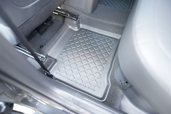 Protezione >  La miscela in termoplastica TPE di alta qualità e la forma a rialzo assicurano una protezione completa. I bordi del set sono alti per prevenire la fuoriuscita di liquidi e della sporcizia, mantenendoli all'interno dei tappetini. Il piano sottostante rimane così asciutto e pulito, eliminando il rischio di cattivi odori e muffe. Designed in Italy, Made in EU. I tappetini sono appositamente progettati per resistere ai raggi UV, alle temperature elevate e ai graffi.