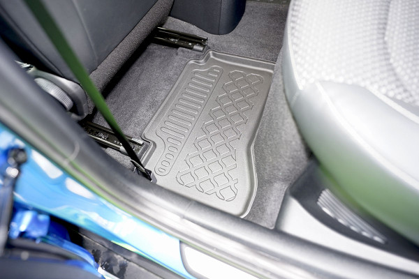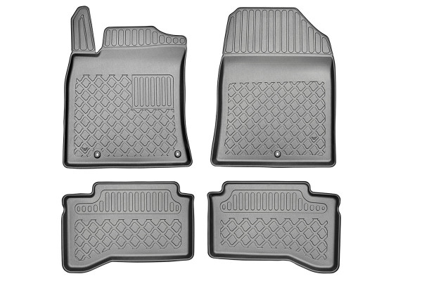 Protezione >  La miscela in termoplastica TPE di alta qualità e la forma a rialzo assicurano una protezione completa. I bordi del set sono alti per prevenire la fuoriuscita di liquidi e della sporcizia, mantenendoli all'interno dei tappetini. Il piano sottostante rimane così asciutto e pulito, eliminando il rischio di cattivi odori e muffe. Designed in Italy, Made in EU. I tappetini sono appositamente progettati per resistere ai raggi UV, alle temperature elevate e ai graffi.