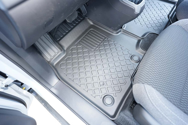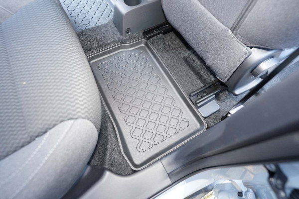 Protezione >  La miscela in termoplastica TPE di alta qualità e la forma a rialzo assicurano una protezione completa. I bordi del set sono alti per prevenire la fuoriuscita di liquidi e della sporcizia, mantenendoli all'interno dei tappetini. Il piano sottostante rimane così asciutto e pulito, eliminando il rischio di cattivi odori e muffe. Designed in Italy, Made in EU. I tappetini sono appositamente progettati per resistere ai raggi UV, alle temperature elevate e ai graffi.