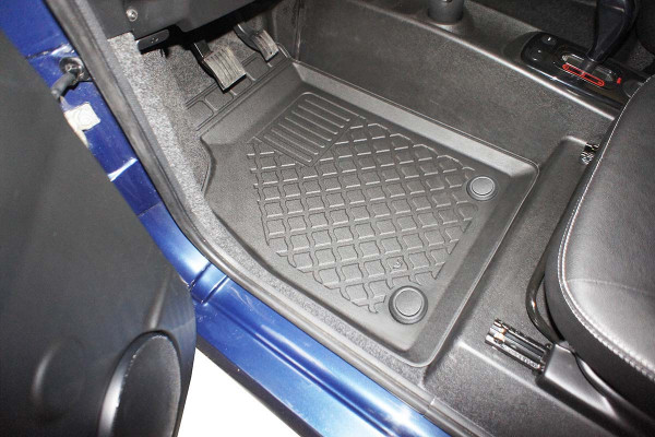 Protezione >  La miscela in termoplastica TPE di alta qualità e la forma a rialzo assicurano una protezione completa. I bordi del set sono alti per prevenire la fuoriuscita di liquidi e della sporcizia, mantenendoli all'interno dei tappetini. Il piano sottostante rimane così asciutto e pulito, eliminando il rischio di cattivi odori e muffe. Designed in Italy, Made in EU. I tappetini sono appositamente progettati per resistere ai raggi UV, alle temperature elevate e ai graffi.