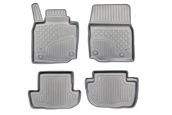 Protezione >  La miscela in termoplastica TPE di alta qualità e la forma a rialzo assicurano una protezione completa. I bordi del set sono alti per prevenire la fuoriuscita di liquidi e della sporcizia, mantenendoli all'interno dei tappetini. Il piano sottostante rimane così asciutto e pulito, eliminando il rischio di cattivi odori e muffe. Designed in Italy, Made in EU. I tappetini sono appositamente progettati per resistere ai raggi UV, alle temperature elevate e ai graffi.