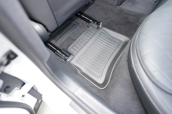 Protezione >  La miscela in termoplastica TPE di alta qualità e la forma a rialzo assicurano una protezione completa. I bordi del set sono alti per prevenire la fuoriuscita di liquidi e della sporcizia, mantenendoli all'interno dei tappetini. Il piano sottostante rimane così asciutto e pulito, eliminando il rischio di cattivi odori e muffe. Designed in Italy, Made in EU. I tappetini sono appositamente progettati per resistere ai raggi UV, alle temperature elevate e ai graffi.