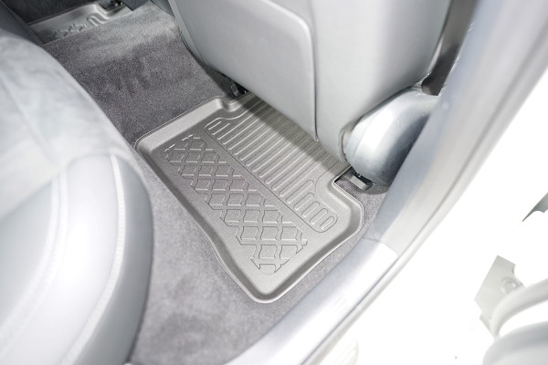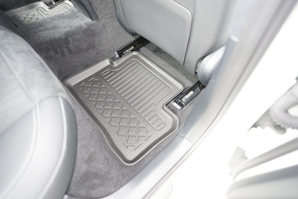 Protezione >  La miscela in termoplastica TPE di alta qualità e la forma a rialzo assicurano una protezione completa. I bordi del set sono alti per prevenire la fuoriuscita di liquidi e della sporcizia, mantenendoli all'interno dei tappetini. Il piano sottostante rimane così asciutto e pulito, eliminando il rischio di cattivi odori e muffe. Designed in Italy, Made in EU. I tappetini sono appositamente progettati per resistere ai raggi UV, alle temperature elevate e ai graffi.