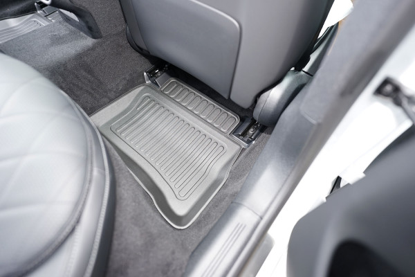 Protezione >  La miscela in termoplastica TPE di alta qualità e la forma a rialzo assicurano una protezione completa. I bordi del set sono alti per prevenire la fuoriuscita di liquidi e della sporcizia, mantenendoli all'interno dei tappetini. Il piano sottostante rimane così asciutto e pulito, eliminando il rischio di cattivi odori e muffe. Designed in Italy, Made in EU. I tappetini sono appositamente progettati per resistere ai raggi UV, alle temperature elevate e ai graffi.