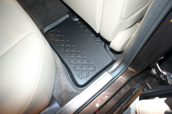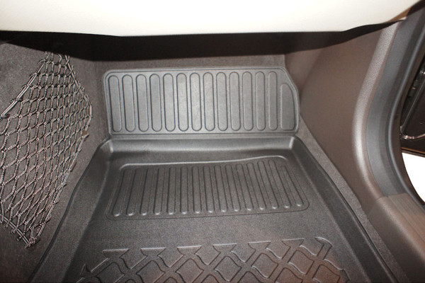 Protezione >  La miscela in termoplastica TPE di alta qualità e la forma a rialzo assicurano una protezione completa. I bordi del set sono alti per prevenire la fuoriuscita di liquidi e della sporcizia, mantenendoli all'interno dei tappetini. Il piano sottostante rimane così asciutto e pulito, eliminando il rischio di cattivi odori e muffe. Designed in Italy, Made in EU. I tappetini sono appositamente progettati per resistere ai raggi UV, alle temperature elevate e ai graffi.