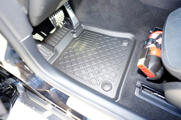 Protezione >  La miscela in termoplastica TPE di alta qualità e la forma a rialzo assicurano una protezione completa. I bordi del set sono alti per prevenire la fuoriuscita di liquidi e della sporcizia, mantenendoli all'interno dei tappetini. Il piano sottostante rimane così asciutto e pulito, eliminando il rischio di cattivi odori e muffe. Designed in Italy, Made in EU. I tappetini sono appositamente progettati per resistere ai raggi UV, alle temperature elevate e ai graffi.