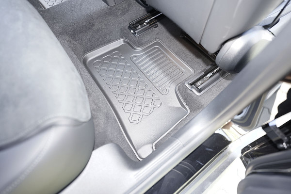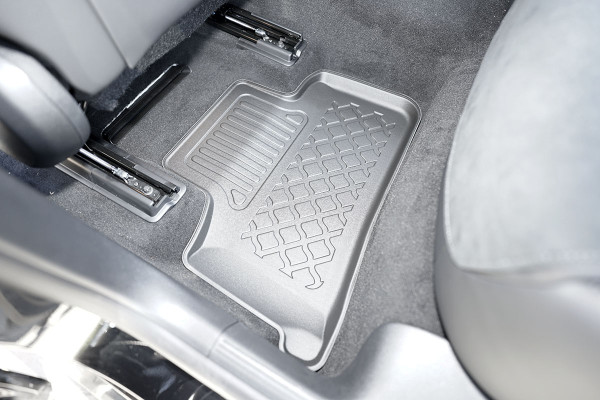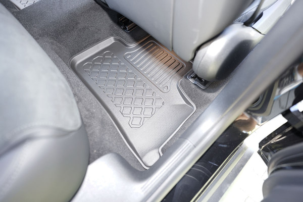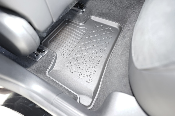 Protezione >  La miscela in termoplastica TPE di alta qualità e la forma a rialzo assicurano una protezione completa. I bordi del set sono alti per prevenire la fuoriuscita di liquidi e della sporcizia, mantenendoli all'interno dei tappetini. Il piano sottostante rimane così asciutto e pulito, eliminando il rischio di cattivi odori e muffe. Designed in Italy, Made in EU. I tappetini sono appositamente progettati per resistere ai raggi UV, alle temperature elevate e ai graffi.