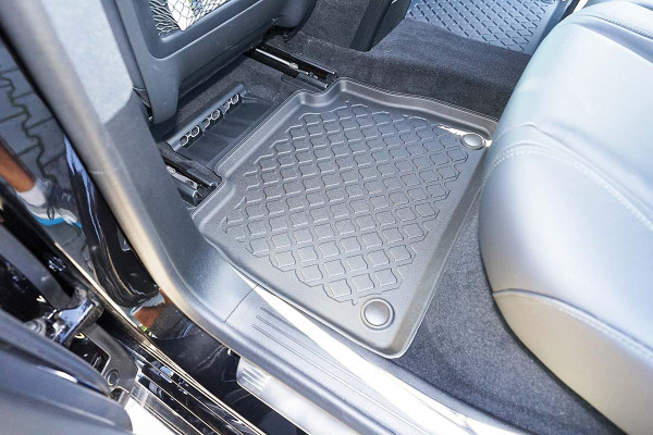 Protezione >  La miscela in termoplastica TPE di alta qualità e la forma a rialzo assicurano una protezione completa. I bordi del set sono alti per prevenire la fuoriuscita di liquidi e della sporcizia, mantenendoli all'interno dei tappetini. Il piano sottostante rimane così asciutto e pulito, eliminando il rischio di cattivi odori e muffe. Designed in Italy, Made in EU. I tappetini sono appositamente progettati per resistere ai raggi UV, alle temperature elevate e ai graffi.