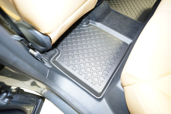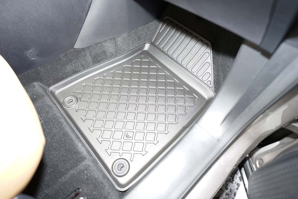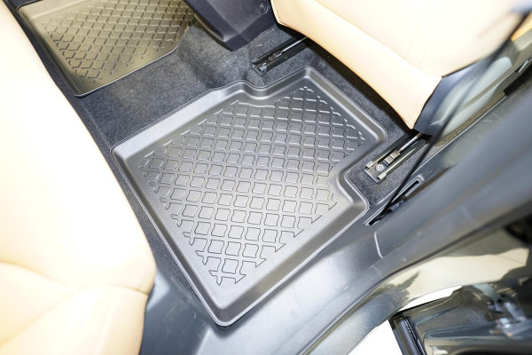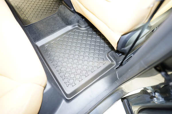 Protezione >  La miscela in termoplastica TPE di alta qualità e la forma a rialzo assicurano una protezione completa. I bordi del set sono alti per prevenire la fuoriuscita di liquidi e della sporcizia, mantenendoli all'interno dei tappetini. Il piano sottostante rimane così asciutto e pulito, eliminando il rischio di cattivi odori e muffe. Designed in Italy, Made in EU. I tappetini sono appositamente progettati per resistere ai raggi UV, alle temperature elevate e ai graffi.
