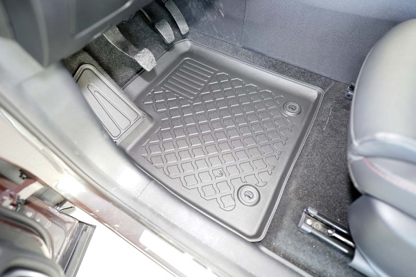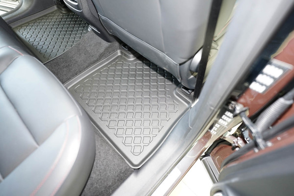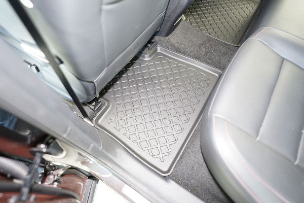 Protezione >  La miscela in termoplastica TPE di alta qualità e la forma a rialzo assicurano una protezione completa. I bordi del set sono alti per prevenire la fuoriuscita di liquidi e della sporcizia, mantenendoli all'interno dei tappetini. Il piano sottostante rimane così asciutto e pulito, eliminando il rischio di cattivi odori e muffe. Designed in Italy, Made in EU. I tappetini sono appositamente progettati per resistere ai raggi UV, alle temperature elevate e ai graffi.
