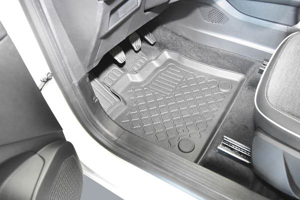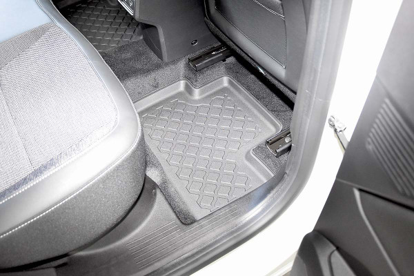Protezione >  La miscela in termoplastica TPE di alta qualità e la forma a rialzo assicurano una protezione completa. I bordi del set sono alti per prevenire la fuoriuscita di liquidi e della sporcizia, mantenendoli all'interno dei tappetini. Il piano sottostante rimane così asciutto e pulito, eliminando il rischio di cattivi odori e muffe. Designed in Italy, Made in EU. I tappetini sono appositamente progettati per resistere ai raggi UV, alle temperature elevate e ai graffi.