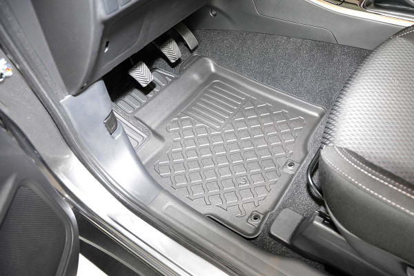 Protezione >  La miscela in termoplastica TPE di alta qualità e la forma a rialzo assicurano una protezione completa. I bordi del set sono alti per prevenire la fuoriuscita di liquidi e della sporcizia, mantenendoli all'interno dei tappetini. Il piano sottostante rimane così asciutto e pulito, eliminando il rischio di cattivi odori e muffe. Designed in Italy, Made in EU. I tappetini sono appositamente progettati per resistere ai raggi UV, alle temperature elevate e ai graffi.