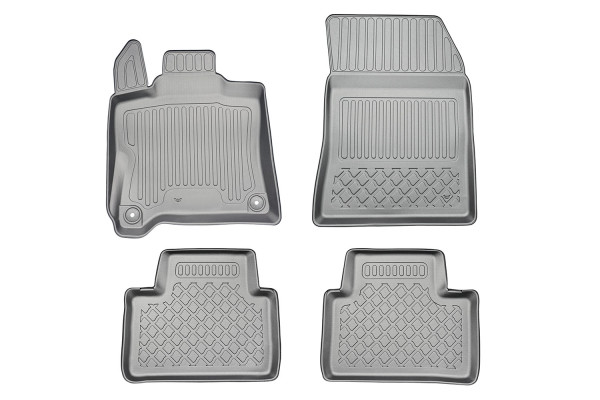 Protezione >  La miscela in termoplastica TPE di alta qualità e la forma a rialzo assicurano una protezione completa. I bordi del set sono alti per prevenire la fuoriuscita di liquidi e della sporcizia, mantenendoli all'interno dei tappetini. Il piano sottostante rimane così asciutto e pulito, eliminando il rischio di cattivi odori e muffe. Designed in Italy, Made in EU. I tappetini sono appositamente progettati per resistere ai raggi UV, alle temperature elevate e ai graffi.