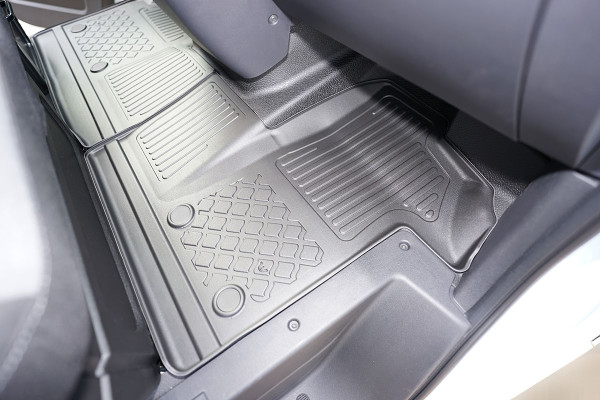 Protezione >  La miscela in termoplastica TPE di alta qualità e la forma a rialzo assicurano una protezione completa. I bordi del set sono alti per prevenire la fuoriuscita di liquidi e della sporcizia, mantenendoli all'interno dei tappetini. Il piano sottostante rimane così asciutto e pulito, eliminando il rischio di cattivi odori e muffe. Designed in Italy, Made in EU. I tappetini sono appositamente progettati per resistere ai raggi UV, alle temperature elevate e ai graffi.