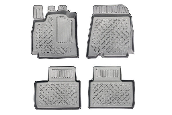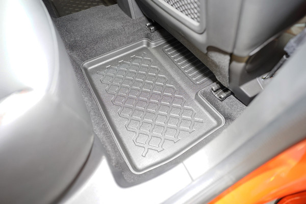 Protezione >  La miscela in termoplastica TPE di alta qualità e la forma a rialzo assicurano una protezione completa. I bordi del set sono alti per prevenire la fuoriuscita di liquidi e della sporcizia, mantenendoli all'interno dei tappetini. Il piano sottostante rimane così asciutto e pulito, eliminando il rischio di cattivi odori e muffe. Designed in Italy, Made in EU. I tappetini sono appositamente progettati per resistere ai raggi UV, alle temperature elevate e ai graffi.