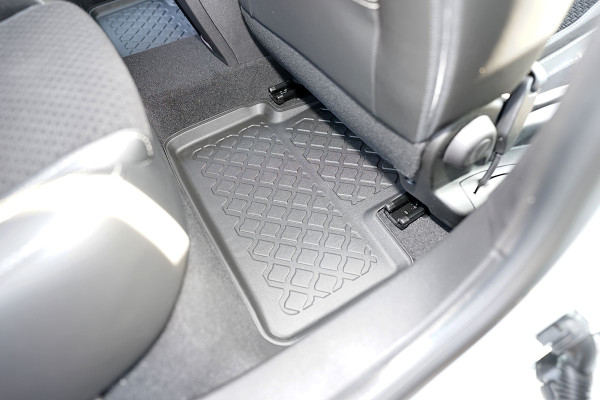 Protezione >  La miscela in termoplastica TPE di alta qualità e la forma a rialzo assicurano una protezione completa. I bordi del set sono alti per prevenire la fuoriuscita di liquidi e della sporcizia, mantenendoli all'interno dei tappetini. Il piano sottostante rimane così asciutto e pulito, eliminando il rischio di cattivi odori e muffe. Designed in Italy, Made in EU. I tappetini sono appositamente progettati per resistere ai raggi UV, alle temperature elevate e ai graffi.