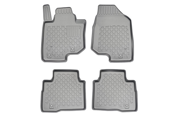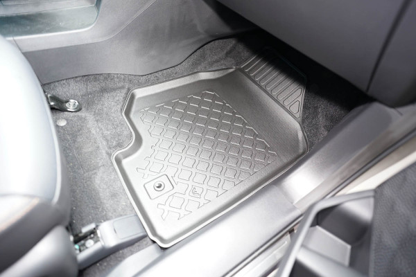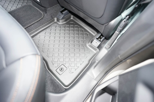 Protezione >  La miscela in termoplastica TPE di alta qualità e la forma a rialzo assicurano una protezione completa. I bordi del set sono alti per prevenire la fuoriuscita di liquidi e della sporcizia, mantenendoli all'interno dei tappetini. Il piano sottostante rimane così asciutto e pulito, eliminando il rischio di cattivi odori e muffe. Designed in Italy, Made in EU. I tappetini sono appositamente progettati per resistere ai raggi UV, alle temperature elevate e ai graffi.