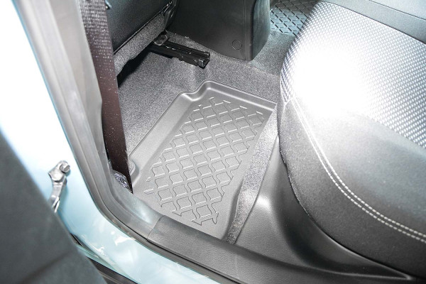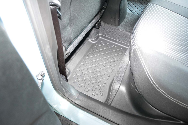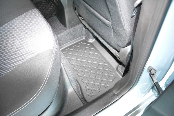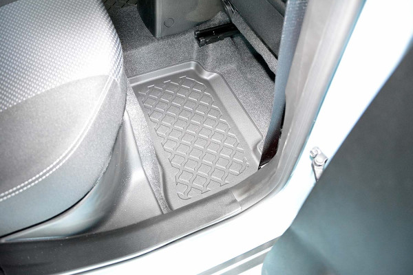 Protezione >  La miscela in termoplastica TPE di alta qualità e la forma a rialzo assicurano una protezione completa. I bordi del set sono alti per prevenire la fuoriuscita di liquidi e della sporcizia, mantenendoli all'interno dei tappetini. Il piano sottostante rimane così asciutto e pulito, eliminando il rischio di cattivi odori e muffe. Designed in Italy, Made in EU. I tappetini sono appositamente progettati per resistere ai raggi UV, alle temperature elevate e ai graffi.